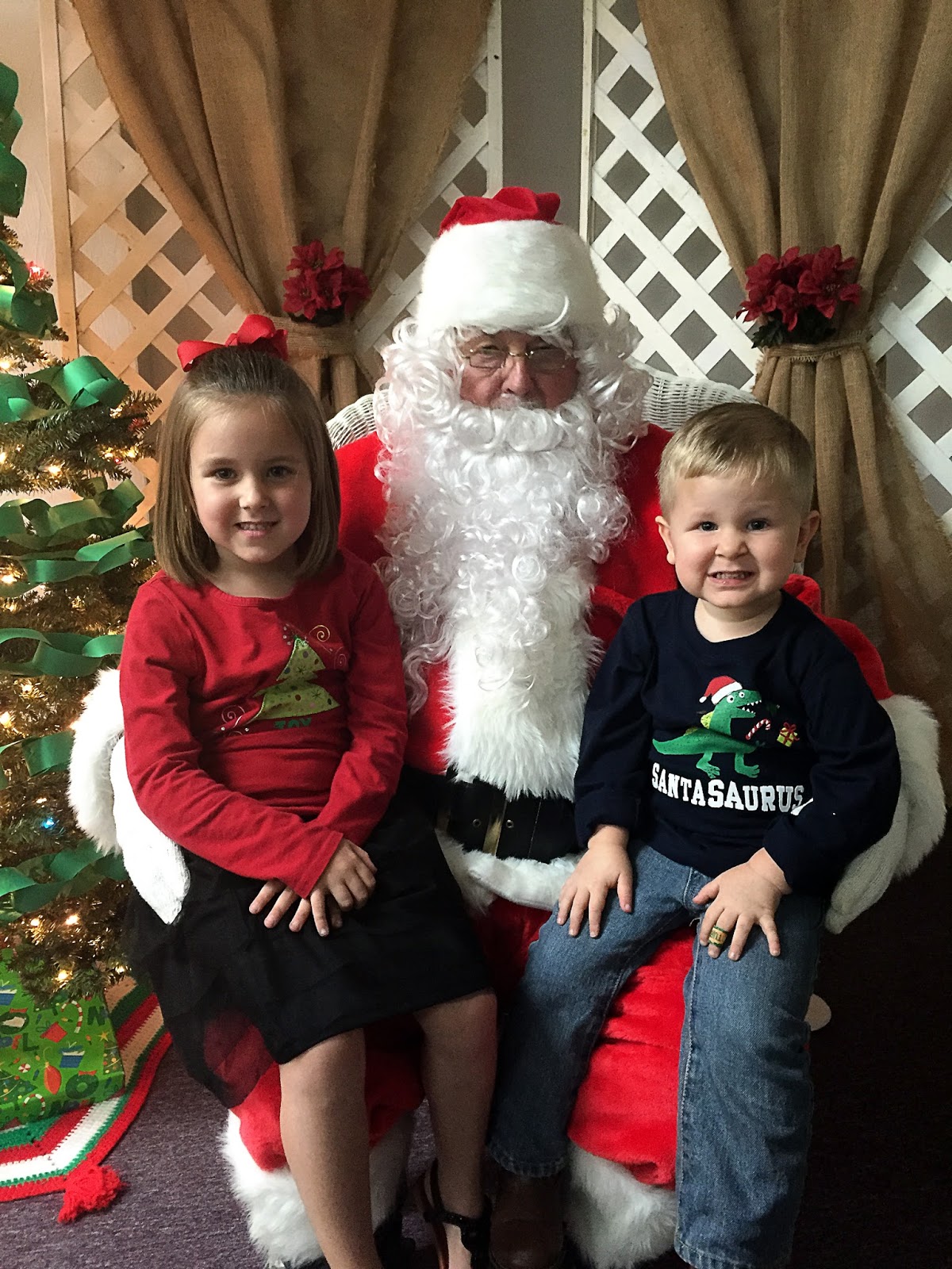 Right after church, we went to Southwood to attend the Santa Brunch. I was excited that we were able to attend again this year since last year was so much fun! Uncle Jordan made reservations for us all to enjoy a delicious lunch and then take pictures with Santa. As usual, Santa arrived in his red golf cart and had candy canes to pass out to all the kids.